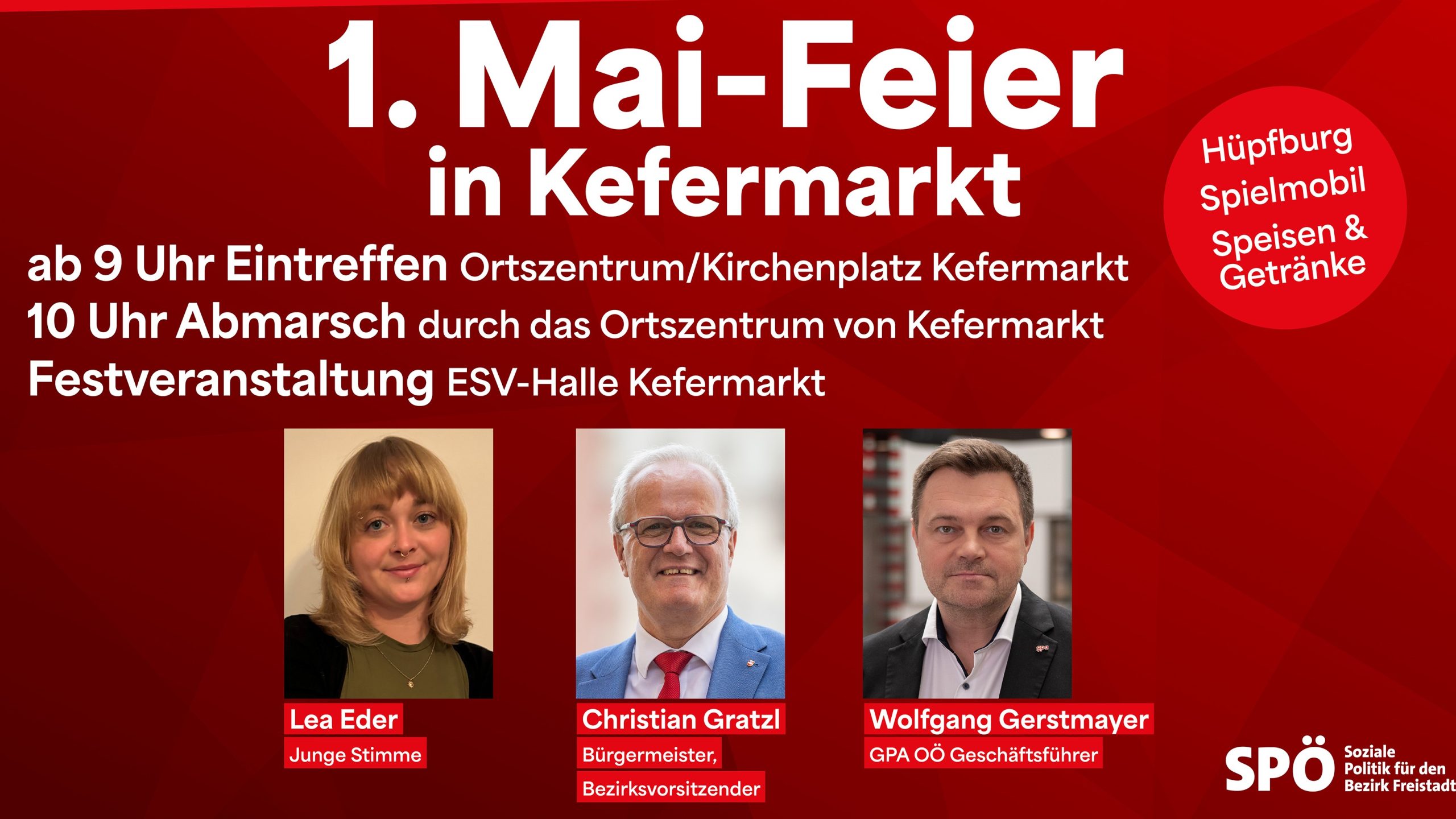 Ein Freistädter mit Innviertler Wurzeln als Hauptredner und eine Junge Stimme aus dem Bezirk Urfahr Umgebung.Die traditionelle Bezirksmaifeier der SPÖ findet heuer am 1. Mai in Kefermarkt statt. Sammelplatz ist […]